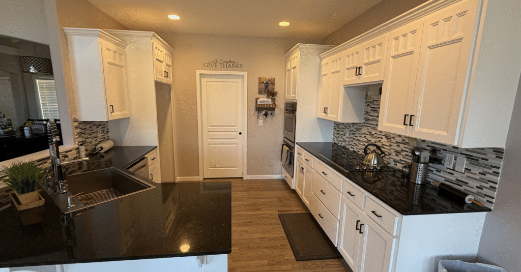 Transform your existing cabinets with a smooth, factory-quality finish. Our professional spray process delivers a durable, like-new appearance without the cost of replacement.